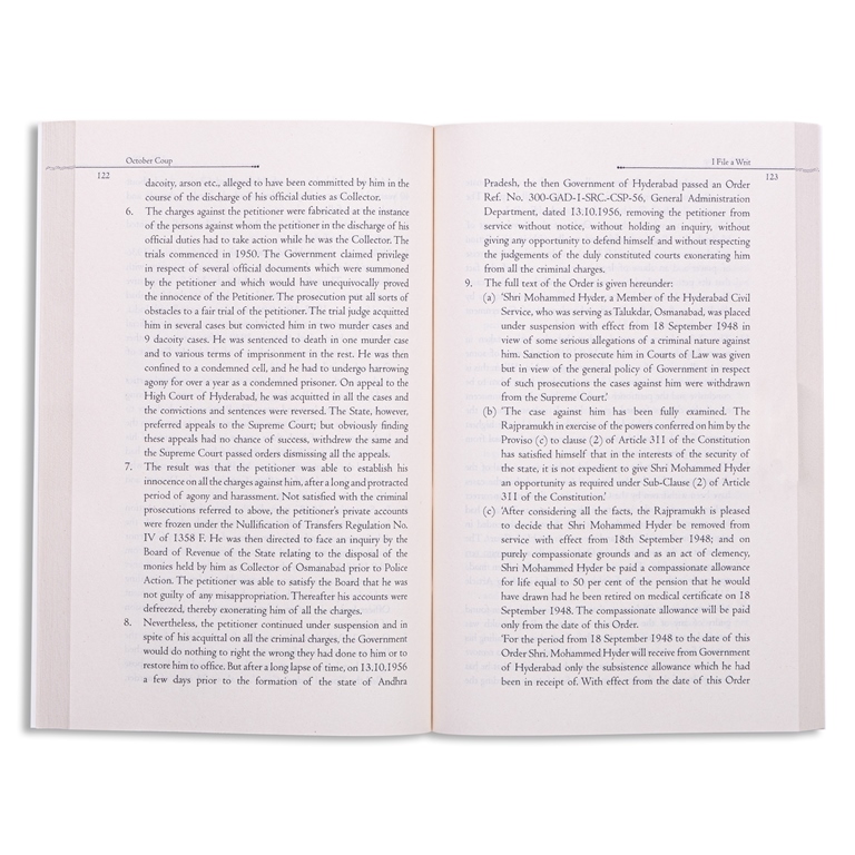 It is 1948. A newly-independent India is trying to persuade Hyderabad to join the Indian Union. Negotiations are difficult for both sides. The State Congress, now operating from Indian territory, has launched a campaign of violent raids, designed to cripple civil administration in the border areas, and provoke an annexation. The leading Islamic par...ty inside Hyderabad, in an equally rash move, has created a para-military body, the Razakars, to counter the threat to Hyderabad's borders. For Mohammed Hyder of the Hyderabad Civil Service, the newly appointed Collector of Osmanabad District (situated on the Hyderabad-Bombay border), both, the wayward State Congress and the ramshackle Razakar outfit are a threat to law and order. This first-person account conveys a vivid picture of Hyderabad under pressure, through the eyes of a senior district administrator. ?Hyder's eloquent memoir details his actions as Collector of Osmanabad just before the Police Action of 1948 and his persecution by the victorious government of India after its takeover of Hyderabad State, making a compelling case for the rights of individuals and states, and above all, for the rule of law. Clearly and elegantly, Hyder sets out not only his own case but that of Hyderabad State, seeking recognition and respect in a world where dominant power can override claims to justice.'