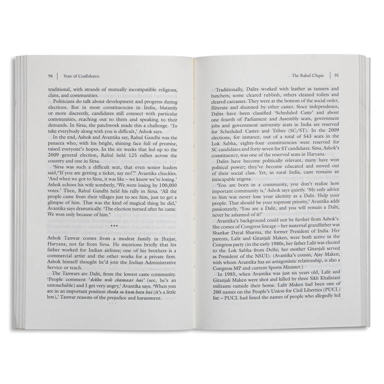 The young politicians profiled in the book are: Akhilesh Yadav, Sachin Pilot, Ghanshyam Anuragi, Jyotiraditya Scindia, Meenakshi Natarajan, Ajoy Kumar, Ashok Tanwar, Manick Tagore, Janardhana Swamy, Jitin Prasada, Jayant Chaudhary, Nilesh Rane, Milind Deora, Sidhant Mohapatra, Kalikesh Deo, Deepender Hooda, and Anurag Thakur.